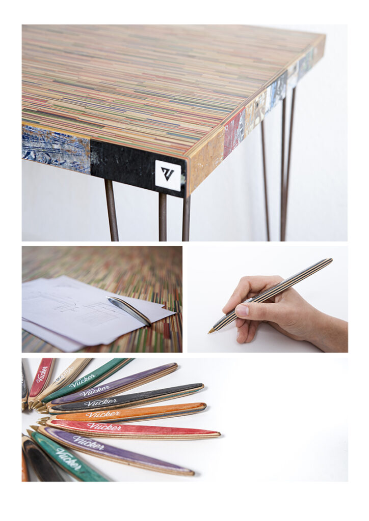 For the Frontpaneldesign I was thinking about my first love: my skateboard. I made skateboards, and skateboardupcycling products for Vucker Skateboards from 2007 until 2018. I wanted to bring this lovely colorfull wood design back to my modular.