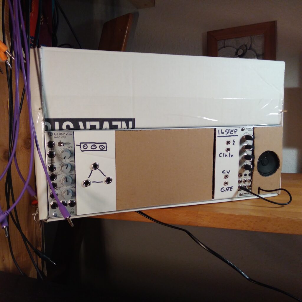 Back home I cut some cardboard and built my first eurorack case. Some weeks later I was definitely done with this verly limited modularsynthesizer and looking for some „student budget“ extension.
